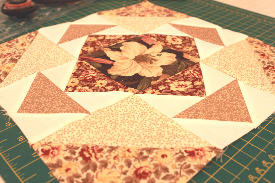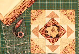 На последнем заседании  клуба Оля Таранова  предложила великолепный проект «Блок месяца», идея в том, что каждый месяц Оля  дает нам новый блок, всего их будет шесть, а топом мы соберем все блоки в единый квилт. У каждого он будет свой, совершенной не похожий и неповторимый.  Заседание клуба было в прошлое воскресенье, но выбрать ткани на этот проект я не успела, и всю неделю жила в нетерпении . И вот вчера основательно подготовившись, сегодня приступила в выполнению задания. Для меня это не только интересный проект, но и  школа пэчворка, так как  это  мой первый в жизни блок. От этого процесса я получила непередаваемое впечатление!!! И благодаря инструментам  и материалам, приобретенным у Лены в магазине, работа была не только интересной, но и приятной. Лена, тот нож в купе с линейкой -   они просто волшебные, сами нарезали мне лоскутки.