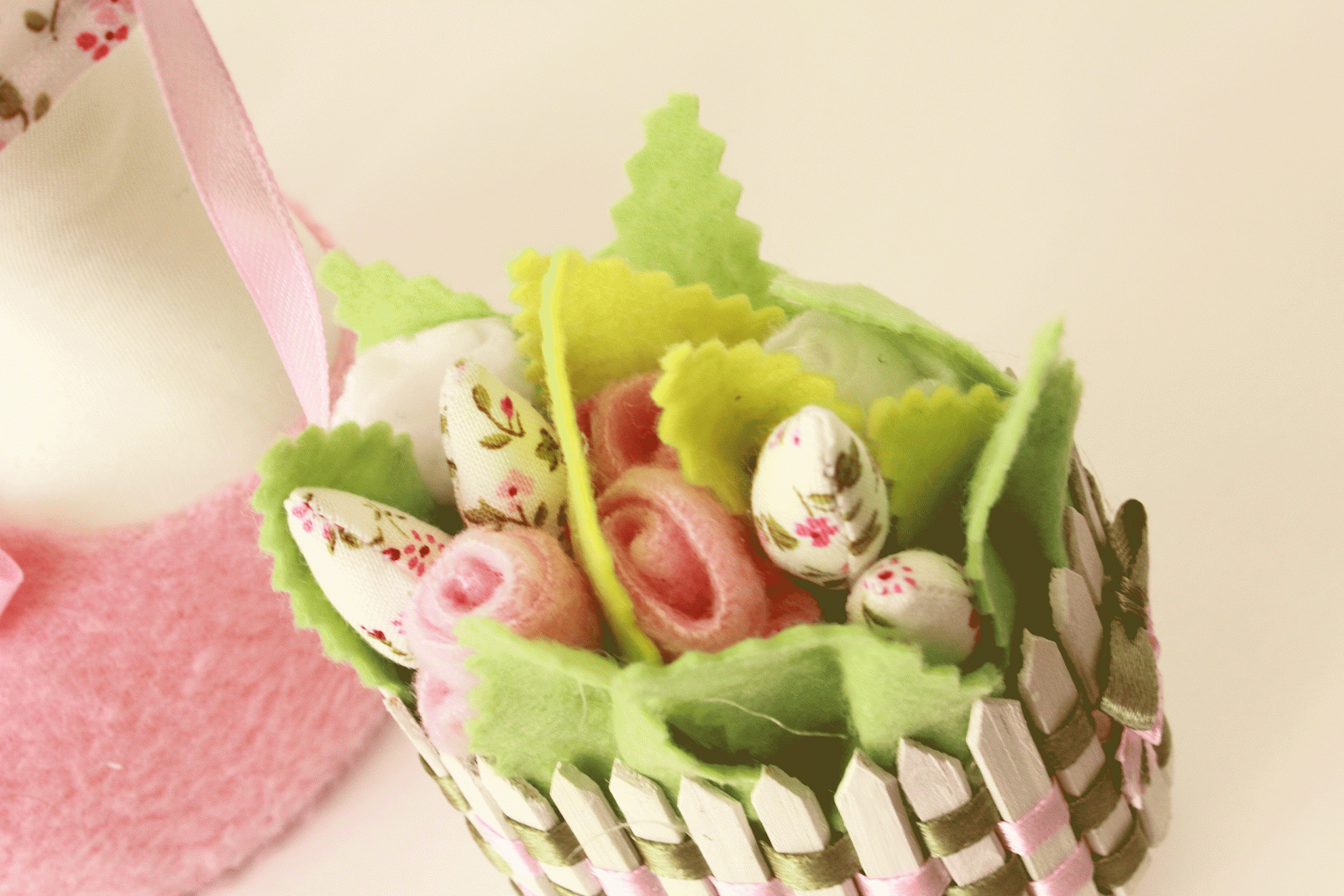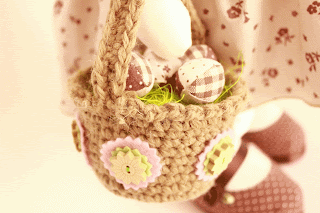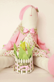 Что бы  не откладывать в долгий ящик, покажу вам еще одну зайку -  Весняночку. Она вся такая розовая, позитивная, в цветочек, так напоминает весну!  Корзиночку для цветов сделала сама, из бамбуковых палочек для морепродуктов. Материалы хлопок, флиз, шелк, фетр.