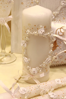 колец с инициалами молодоженов (машинная вышивка), набор свечей, свадебные